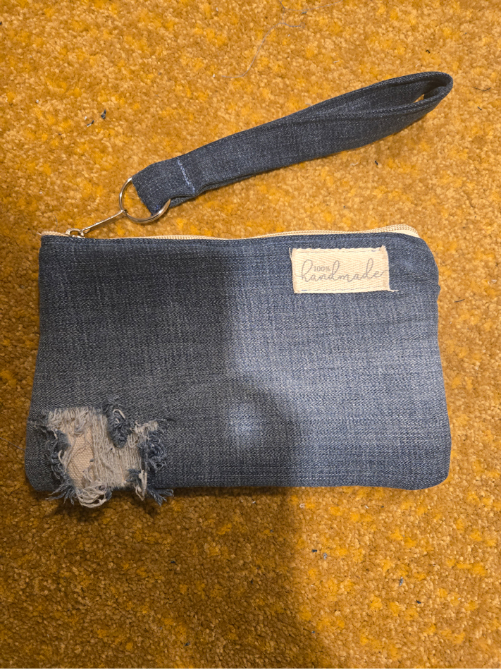 9×5 Wristlet. Distressed but line. Not taking much with me, but will hold gloss, shades, keys, phone, and a few dollars! Let’s go!