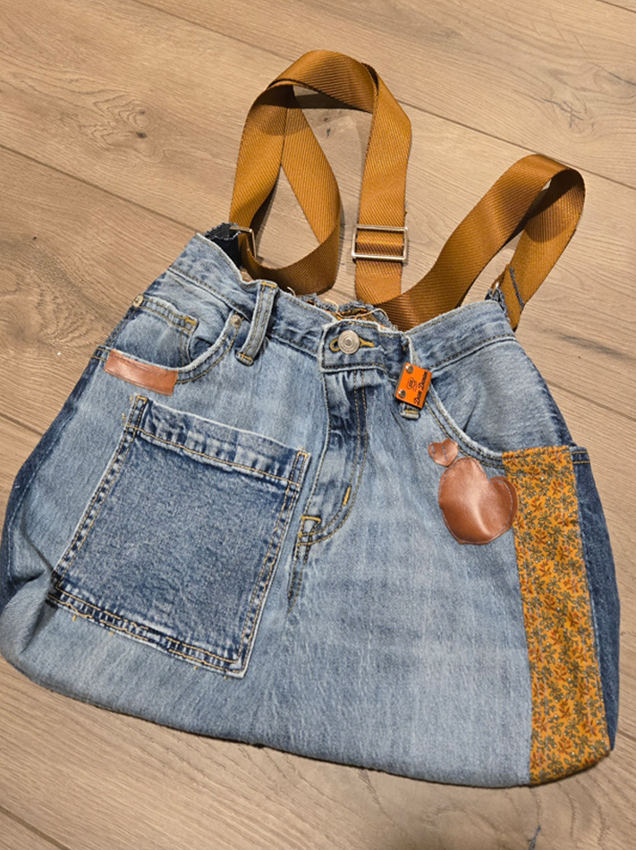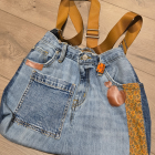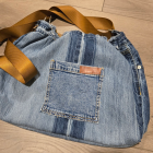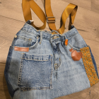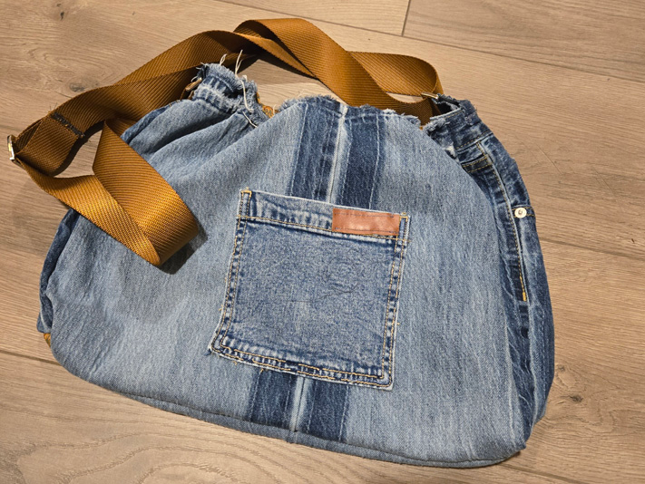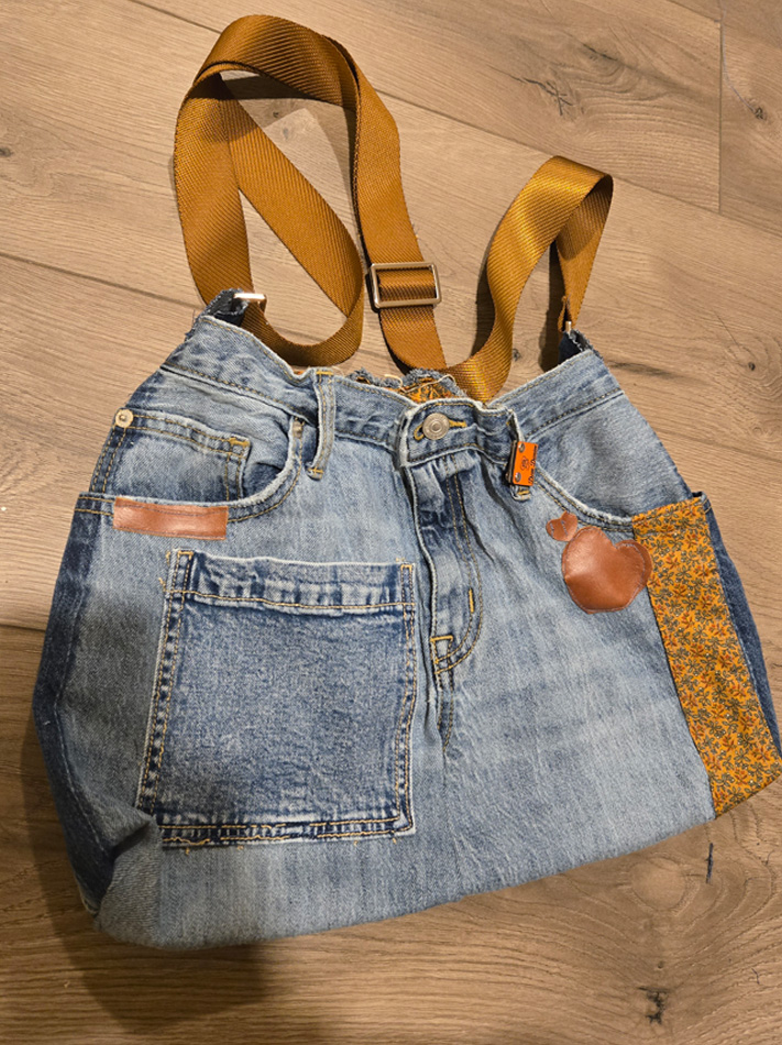 16×11, distressed with adjustable strap, lined and has several pockets to get up and go with whatever you wish to carry. A touch of leather accent in brown. Lets Go!